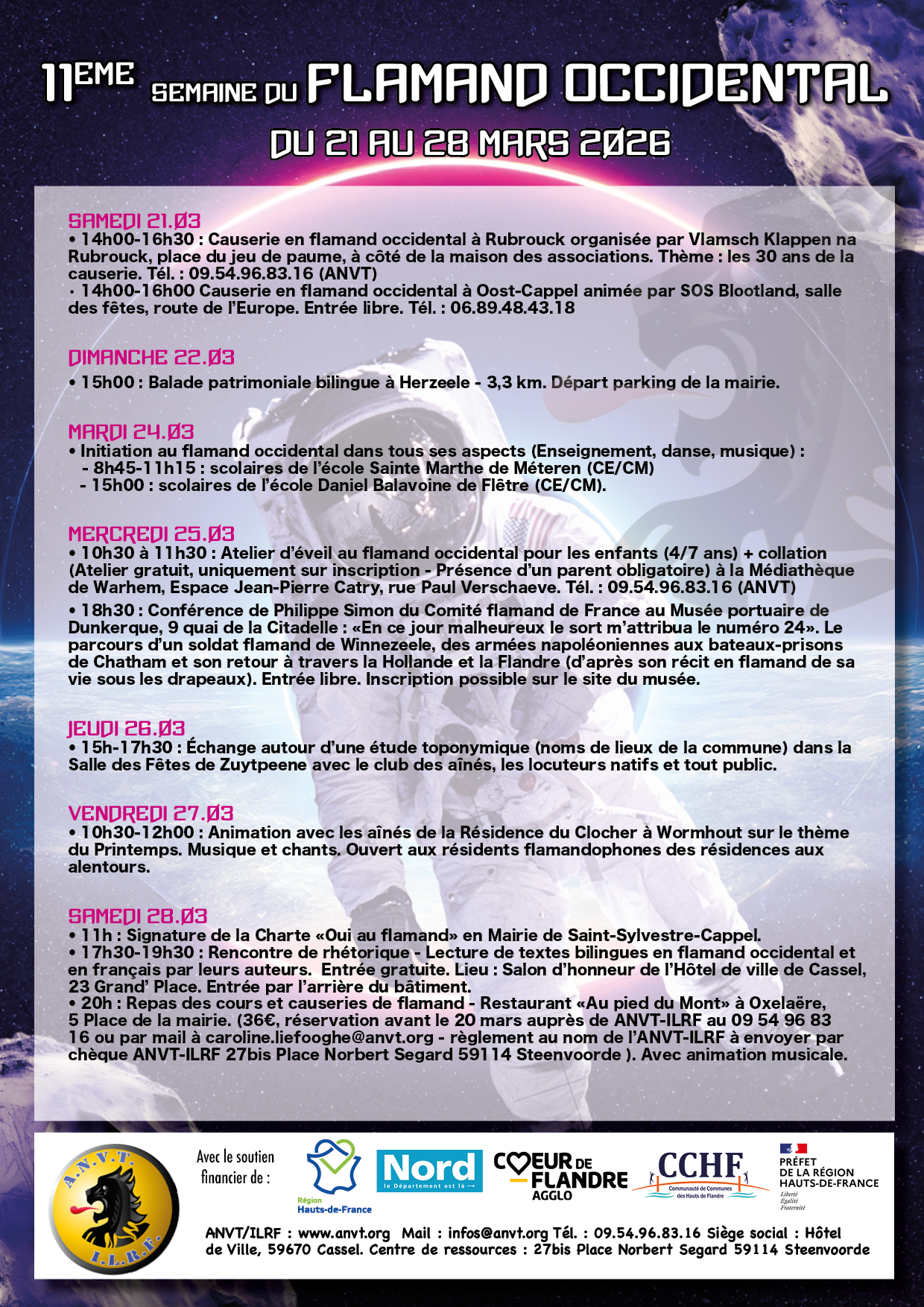 De Rubrouck à Oost-Cappel, de Herzeele à Méteren, en passant par Flêtre, Warhem, Zuytpeene, Wormhout, Saint Sylvestre Cappel, Cassel ou Oxelaëre, venez nous retrouver dans les différentes activités prévues durant cette semaine, entre autres :